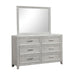 Crafted with precision, the Fiona 6 Drawer Dresser seamlessly combines the beauty of real wood with durability. Its construction features Acacia Solids, Manufactured Woods, and Oak Veneer, ensuring strength and stability. The multi-step finish, achieved through wire brushing and white glazing, enhances the natural wood grain, resulting in a light, clear mist gray finish. The dresser’s design showcases sophisticated details, including picture frame moldings, tapered legs, and sleek drawer pulls. On top, a genuine white and gray marble surface adds a rich accent that complements the wood finish. Whether your decor leans traditional or contemporary, the transitional style of the Fiona dresser effortlessly fits in. Practicality meets elegance with time-tested drawer construction. French front and English back dovetail joinery ensures strength, while full-extension glides allow smooth operation. Thoughtful extras include sanded and sealed drawers to prevent clothing snags, and a felt-lined top drawer to protect delicate items.
