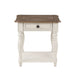 Embrace the classic charm and practicality this Florian end table brings and create a space that is both stylish and organized. The antique white finish of the table exudes a sense of vintage allure, bringing a touch of nostalgia to your home. Its subtle distressed detailing adds character and depth. The oak finish tabletop adds warmth and richness to the overall design. This end table boasts a convenient lower shelf. The shelf offers a perfect spot to display your favorite books, magazines, or decorative items, adding a personalized touch to your living area.