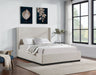Unwind and relax as the cares of the day drift away from the confines of this Flynn linen textured fabric bed. An artfully designed bedroom masterpiece, this bed offers a winged headboard that's extra tall to make a bold impression in your bedroom sanctuary. The linen upholstery fabric that covers this entire bed from top to bottom is soft to the touch, while the headboard is lightly padded for comfort as you read in bed or watch TV. A solid wood base provides sturdy support for this impeccably styed fabric bed.