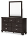 | Details | B441B4: Includes panel headboard, footboard, rails and slats, Made with hardwood solids, engineered wood veneer and MDF substrates, Dark brown finish, Floating panel headboard, Picture frame footboard, Foundation/box spring required, sold separately , Mattress available, sold separately, Assembly required, B441B1: Includes dresser and mirror, Made with hardwood solids, engineered wood veneer and MDF substrates, Dark brown finish, Metal bar pulls with bright nickel-tone finish, 7 smooth-gliding drawers with dovetail construction and metal center guides, Drawer interiors are lined with a wood grain laminate for a clean, finished look, Top moulding on dresser, Mirror attaches to back of dresser, B441-46: Made with hardwood solids, engineered wood veneer and MDF substrates, Dark brown finish, Metal bar pulls with bright nickel-tone finish, 5 smooth-gliding drawers with dovetail construction and metal center guides, Drawer interiors are lined with a wood grain laminate for a clean, finished look, Top moulding, B441-92: Made with hardwood solids, engineered wood veneer and MDF substrates, Dark brown finish, Metal bar pulls with bright nickel-tone finish, 2 smooth-gliding drawers with dovetail construction and metal center guides, Drawer interiors are lined with a wood grain laminate for a clean, finished look, Top moulding, | |