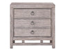 - The unique transitional styling of the Fusion Nightstand delivers universal appeal and versatility. Two soft-close drawers with felt lined top drawer will provide storage while integrated cable management makes charging a phone or tablet simple and convenient. Crafted from straight grain Oak Solids and Veneers, this dresser features a subtle Dawn Finish with Antique Brass Hardware and is ideal for a main or spare bedroom.