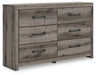 Combining a casual aesthetic with functional flair, this dresser suits styles from rustic to industrial. Its smooth-gliding drawers store everyday essentials with ease, from clothes to bed linens. Elongated drawer pulls in a dark hue polish off the look, harmonizing beautifully with the weathered gray wood grain.