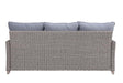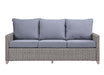 Enhance your outdoor living space with the Greeley patio sofa set. Place by a pool for the ultimate relaxing summer day with friends and family. Clean lines, low profile, minimalist, and fabricated in a subtle and elegant gray fabric and gray wicker with all components chosen to withstand moderate weather and humidity.
