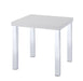The high gloss white tabletop is perfectly paired with the gleaming chrome legs to create a ultramodern piece that will go with any color scheme and decor style and provides a clean look to any space. The sleek clean lines and classic silhouette makes this piece perfect for making your decor items stand out.