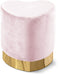 Show your room a little love with this heart-shaped ottoman/stool. The beautiful-colored upholstery covering the top and sides of this ottoman is sumptuous to the feel, ensuring its luxurious look from all angles. Thetone base complements the of the stool, adding a distinct contrast to the presentation. The velvet material is rich and sleek, so it pampers your feet while you prop them up at day's end.
