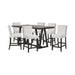 The High Line Counter Dining Set is the perfect blend of style, durability, and comfort for your home. Expertly crafted from solid Acacia and Rubberwood, along with high-quality manufactured woods and Birch veneers, this set guarantees durability and stability for long-term use. The fresh, contemporary finish features a meticulously hand-applied, multi-step process, resulting in a smooth, matte hue with sophisticated undertones. This finish, combined with subtle wood grain patterns, creates a sleek and modern ambiance, ideal for contemporary spaces. The chairs are upholstered in luxurious bouclé fabric, known for its exceptional durability and plush comfort, making them perfect for frequent use. The unique looped texture adds an element of elegance and ensures the longevity of your seating. The table''s flat, rectangular top and crisscross leg design emphasize functionality and simplicity while adding visual interest and stability, making it a versatile addition to any room, from dining areas to workspaces. This set comfortably seats up to six guests, with the spacious table and comfy chairs upholstered in 100% easy-care polyester fabric, blending elegance with practicality. The High Line Counter Dining Set offers a stylish, functional, and durable solution for your dining needs.