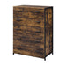 Rustic wood frame with metal accents celebrates the beauty of raw materials for a true industrial feel. Straight lined-metal border with dark finish highlights the elaborate silhouette of the chest. Five storage drawers in different sizes help you organize all your makeup. Charming and practical, the Juvanth chest adds stylish storage while complements your bedroom decor.