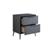 The Kailani 2 Drawer Nightstand is the perfect combination of modern design, durability, and practicality, making it an essential addition to any bedroom. This nightstand is expertly crafted from a blend of solid rubberwood, engineered wood, and eco-friendly decorative laminate, ensuring it offers lasting style while being environmentally responsible. The decorative laminate not only enhances the nightstand’s appearance but also provides superior resistance to scratches, moisture, and stains, helping it maintain its beauty with minimal maintenance. Designed with a modern minimalist aesthetic, the nightstand features clean lines, a sleek silhouette, and a chic ribbed texture. The slim, metallic handles and tapered legs further elevate its contemporary appeal while ensuring durability and ease of use. Wrapped in luxurious 100% Polyester Velvet, the textured drawers are highlighted by chrome pulls and angled legs, adding a touch of sophisticated glamour. The spacious drawers are thoughtfully designed with fully finished interiors for snag-free storage, glide effortlessly on full-extension slides, and are reinforced with durable dovetail joinery for lasting strength and smooth operation. The Kailani Nightstand is both a stylish and functional piece, perfect for enhancing your bedroom decor.