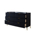 The Kailani 6 Drawer Dresser combines modern minimalist design with durable, eco-friendly construction, making it a stylish and sustainable choice for any bedroom. Crafted from solid rubberwood, engineered wood, and eco-friendly decorative laminate, this dresser is built to last with resistance to scratches, moisture, and stains, ensuring long-term beauty with minimal upkeep. The dresser features clean lines, a sleek silhouette, and a chic ribbed texture, complemented by slim metallic handles and tapered legs that enhance its contemporary appeal. Wrapped in luxurious 100% Polyester Velvet, the textured drawers are accented by chrome pulls and glide effortlessly on full-extension slides, with dovetail joinery providing lasting strength and smooth operation. This dresser not only adds a touch of sophisticated glamour to your space but also offers practical, snag-free storage, making it a perfect blend of form and function.