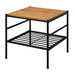 KD, Square End Table • Storage: Open Compartment (Metal Grid Shelf, Fixed) • Includes: Wooden Top, Metal Frame & Shelf (Open Base) •• CONSTRUCTION •• TOP) Wooden Top: Oak finish, Spruce Solid Wood, 18mm T • BASE) Metal Straight Leg & Shelf : Black finish Iron Tube (7/8"Dia, 9.5mm, 20+3mm), Iron Wire (5mm)