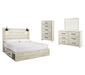 Details B192-46: Made of engineered wood (MDF/particleboard) and decorative laminate, Wispy white finish over replicated oak grain with authentic touch, Large-scale hardware with dark finish, 5 smooth-gliding drawers, Drawer interiors are lined with a faux linen laminate for a clean, finished look, Safety is a top priority, clothing storage units are designed to meet the most current standard for stability, ASTM F 2057 (ASTM International), Drawers extend out to accommodate maximum access to drawer interior while maintaining safety, B192B19: Includes headboard, footboard, side storage, rails and slats, Made of engineered wood (MDF/particleboard) and decorative laminate, Wispy white finish over replicated oak grain with authentic touch, Large-scale hardware with dark finish, 2 decorative sconce lights, LED with 3 AA batteries, 2 smooth-gliding storage drawers, 2 storage cubbies, 2 slim-profile USB charging ports, Power cord included; UL-listed, Bed does not require additional foundation/box spring; accommodates most zero clearance adjustable bases with the addition of a bunkie board, Mattress available, sold separately, Assembly required, B192B1: Includes dresser with mirror, Made of engineered wood (MDF/particleboard) and decorative laminate, Wispy white finish over replicated oak grain with authentic touch, 6 smooth-gliding drawers, Drawer interiors are lined with a faux linen laminate for a clean, finished look, Large-scale hardware with dark finish, Mirror attaches to back of dresser, Assembly required, B192-92: Made of engineered wood (MDF/particleboard) and decorative laminate, Wispy white finish over replicated oak grain with authentic touch, Large-scale hardware with dark finish, 2 smooth-gliding drawers, Drawers lined with faux linen laminate for finished aesthetic, 2 slim-profile USB charging stations, Power cord included; UL Listed,