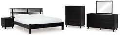 Danziar King Panel Bed with Mirrored Dresser, Chest and Nightstand