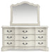 | Details | B980B4: Includes headboard, footboard and rails, Made with hardwood solids, spruce veneer, MDF substrates and cast resin components , Antiqued white painted finish, Polyester upholstery, Button tufting, Foundation/box spring required, sold separately, Mattress available, sold separately, Assembly required, B980B1: Includes dresser and mirror, Made with hardwood solids, spruce veneer, MDF substrates and cast resin components, Antiqued white painted finish, 9 drawers with fully finished interiors, French and English dovetail construction and ball-bearing side glides, Metal bar pulls with aged pewter-tone finish, Mirror attaches to back of dresser, B980-93: Made with hardwood solids, spruce veneer, MDF substrates and cast resin components, Antiqued white painted finish, 3 drawers with fully finished interiors, French and English dovetail construction and ball-bearing side glides, Metal bar pulls with aged pewter-tone finish, 110V power supply with dual USB charging ports, Power cord included; UL Listed, | |