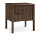 The Kivo solid wood nightstand in a rich finish is the perfect companion to its matching bed. Vertical slatted drawer fronts mirror the same mid-century design details, creating a cohesive and refined bedroom set. With two spacious drawers and a sturdy, solid wood build, it balances style with everyday function.