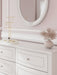 Fit for a princess. This dresser with mirror‘s crisp matte white finish pairs with charming ornate beading details, bun feet and crystal knobs —perfect for your girly girl. This enchanting set with six spacious drawers is sure to make your little one feel like royalty.