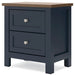 Add homespun charm to your restful retreat. A modern take on a timeless silhouette, this nightstand pairs a dark slate blue finish with a light brown top. Drawer fronts and legs in a classic Shaker style bring an air of beautiful simplicity to the bedroom. Whether it's part of a charmingly curated guest suite or a casually carefree kids room, this nightstand is a welcome addition.
