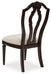 | Details | Made with solid wood frames and cast resin components, Cherry brown finish, Polyester upholstery, Cushioned seat, Includes adjustable levelers, Assembly required | |