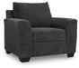 This chair personifies contemporary comfort. Its clean-lined frame and neutral color lend must-have versatility. Softly textured fabric makes it that much more inviting. A welcome combination of chic style and a cozy feel, this piece completes your living room with modern flair.