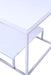 A contemporary collection of tables featuring chrome bases and white tops. An asymmetrical bottom shelf adds function as well as style to the collection and the Silvershield® top adds beauty and texture to the cocktail and end table.