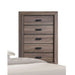 The Lyndon chest has abundant storage space to keep your bedroom essentials, clothing and bedding. Weathered gray grain finish with 5 drawers. English dovetail drawers construction and center metal glide make the opening and closing. The horizontal line design brings a relaxing and interesting environment.
