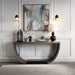 The half-moon design of this Maceo console table is both beautiful and functional. The black and gold finishes are for those with refined style. This table is perfect in a hallway or an entryway, perfect for organizing and displaying items. Serving as a practical addition to any room for a more eclectic space.