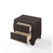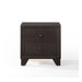 The Madison casual nightstand in espresso finish features two convenient drawers. All drawers have English dovetail with center metal glides. The elegant medium brown color and clean lines of this collection are both pleasing and subtle.