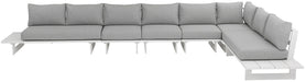 Maldives - 6 Piece Water Resistant Outdoor Patio Modular Corner Sectional With White Base - Gray