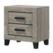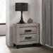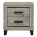 A fresh take on farmhouse design the Mari bedroom collection offers a sleek transitional design aesthetic. The bedroom set is finished in a stylish light gray with black accents that can appease anyone. The bed features a chevron-paneLED headboard and sits on black wooden legs. All the casegoods offer storage drawers with contrasting black metal pulls and sit on black wooden legs to match the bed. The dresser mirror is encased in a wooden frame to match the dresser.