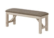Form and function work beautifully together in the Maribelle dining group. The trestle base table features dual draw leaves that tuck away neatly and provide extra space when needed. The sturdy bench and chairs feature cushioned seats with gray linen weave upholstery. The two tone finish is on trend and fits into a variety of decor styles.