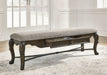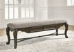 From its ornamental appliques to its large scale, this dining bench makes a bold statement. With ornately shaped legs, a plush cushioned seat and a storage drawer, the opulent bench wows with stunning style. The look is timeless. The feel? Right at home.