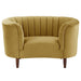 An ode to mid-century modern, the Millephri collection will help achieve this modern aesthetic. The pocket coil foam seating gives off the feel of sitting on a plush cloud. The pieces are upholstered in a gorgeous velvet fabric and feature deep channel tufting, for added texture and depth. The wooden legs provide stability and style. This collection provides an instant upgrade in any room. Available in three colors, olive-yellow, gray and, blue.
