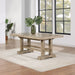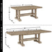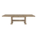 A grandly scaled dining table with modern farmhouse styling, the Napa dining table offers ample room for all visitors. This plank-effect table comes with two 18-inch leaves that expand the table to a full 108 inches to seat up to 10 people. The twin pedestal table features details like exposed tenons to give a rustic feel that works well with casual environments.