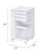 Rectangular Storage Cart (Free Standing) • Storage: 3 Swiveling-Drawers, 5 Open Compartments (2 Front, 1 Back & 2 Side) • Includes: Wooden Frame, Caster Wheels () •• CONSTRUCTION •• Wooden Case-Frame: Veneer (PVC/PU), MDF • Caster Wheel Included (2 w/Lock) ••• Drawer: GLIDE NOT Included (), DOVETAIL NOT Included, Full Finished Inside, Manual Close, Hardware NOT Included • Q&A] Drawer Size: 9" x 7" x 2"