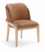 Warm and inviting, the Navo vegan leather upholstered dining chair blends Art Deco elegance with everyday comfort. Its smooth vegan leather seat is paired with a solid wood frame in a rich natural finish for timeless appeal. With its sculpted back and tailored lines, it adds sophistication to any dining setting.