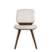 KD, Armless Chair (High Backrest) • NO Storage (Open Base) • Stationary Seat: Standard Dining • Padded Seat & Back with Wood Panel •• CONSTRUCTION •• Seat & Backrest: White PU Finish, Outside Wood Panel: Walntut Finish • Wood Splayed Leg: Walnut Finish (NO Casters)