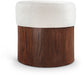 Strikingly modern, the Nimes velour fur fabric upholstered ottoman combines plush comfort with sleek design. The top is wrapped in luxurious velour fur fabric, offering a soft and inviting texture, while the cylindrical rich brown walnut wooden base provides a minimalist contrast. This versatile ottoman is perfect as extra seating, a footrest, or a stylish accent in any living space.
