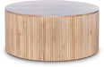 Bring contemporary design to the forefront with the addition of this Oakhill Table to your living room or den. This eye-grabbing design features solid mango wood construction, so you can count on its durable demeanor to hold up to the rigors of use in your busy home. The fluted wood design is chic and contemporary, adding a distinctive modern vibe to your room in an instant. A finish tops off the look of this Oakhill table, adding to its visually striking beauty.