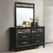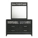 The Obsidian 6-Drawer Dresser is a perfect embodiment of modern luxury and practical design, making it an ideal addition to any sophisticated bedroom. This dresser is expertly crafted from premium solid Rubberwood, enhanced with manufactured woods and veneers, ensuring both lasting beauty and the durability of genuine wood. Its sleek, clean lines are accentuated by a chic, low-sheen black finish that exudes bold elegance and refined style. The dresser's design is further elevated by geometric cut-outs backed with mirror-like Mylar, adding a touch of luxury and modern glamour to the piece. Functionality is not compromised for style; the dresser features six spacious, smooth-gliding drawers equipped with durable Kenlin Glides and stylish acrylic drawer pulls. Each drawer is meticulously crafted with quality dovetail joinery and finished interiors, providing a snag-free, elegant storage solution for your clothing and accessories. The Obsidian 6-Drawer Dresser is the perfect blend of fashion and function, offering ample storage space while enhancing the aesthetic appeal of your bedroom.