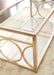 Elevate your living room with the Olympia Coffee table, adding a touch of Hollywood glitz and glamour to your space. Make a statement with contemporary styling, gold chrome accents, a sleek glass top, and a mirrored bottom shelf. The eye-catching concentric circles on the table ends make these tables true showstoppers, infusing your living room setting with brightness and sophistication.