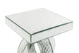 Make a striking statement in your home with this Ornat Accent Table. Featuring mirrored frame with faux diamond inlay, it creates a bold, yet elegant textured look. Classic pedestal base gives it an elegant support, with spectacular faux diamonds inlay adding modern glamour to this piece. Contemporary yet beautifully crafted, this accent table will sure to be a great addition to your space.