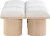 Bring valuable seating and remarkable style to your space with this Pavilion boucle fabric bench, an exquisite balance of style and usability for the entryway, bedroom, and beyond. Crafted from oak veneer with a natural finish, this bench has a 4-inch-thick seat cushion that's channel-tufted for a touch of luxury. The bench's columnar bases add a dash of art deco design, making it a captivating focal point in any room.