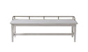 A Bench constructed of Asian Hardwood solids and built to last, the Pendleton Bench features a lustrous Ivory finish and oil-rubbed brass finish galley rail for a charming farmhouse look to blend with any casual decor. Great for seating multiple guests at the Pendleton table or as a bench in a mud-room or at end of bed.