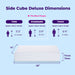 Fall asleep faster. Experience side sleep nirvana. Wake up rested. The Side Cube Deluxe is Larger in size than the original Side Cube and is specifically designed by side sleepers, for side sleepers of all shapes and sizes. By filling your 90-degree shoulder gap, The Side Cube Deluxe aligns your spine to relieve stress on your ear, neck, shoulder and back. The Stretchy Soft Pillowcase is smooth and cushions your head. Our most comfortable, removable, machine-washable cover features canals to allow air flow to naturally keep you cool all night. The temperature regulating, ventilated, high-quality AeroPluff Foam Core features advanced antimicrobial properties keep the pillow cleaner, longer. This deluxe combination of support, comfort and longevity will relieve headaches, neck tension, shoulder pain, back pain and the general tiredness that results from a poor night’s sleep.