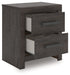 Designed with everyday style in mind, this nightstand is a simply chic approach to modern living. A dark charcoal finish blends black and brown undertones, creating a versatile look that effortlessly pairs with your existing pieces. And for must-have function, two smooth-gliding drawers store bedside essentials in charming fashion.