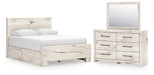 | Details | B2310B8: Includes panel headboard, panel footboard, 2 under bed storage units and roll slats , Made with engineered wood (MDF/particleboard/plywood) and decorative laminate for the right balance of affordability and durability, Rustic white finish over replicated reclaimed oak grain with authentic touch, Decorative laminate replicates natural or man-made material surfaces with consistent color, pattern and texture, 4 smooth-gliding storage drawers, Drawer interiors are lined with a faux linen laminate for a clean, finished look, Bed does not require additional foundation/box spring; accommodates most zero clearance adjustable bases with the addition of a bunkie board , Mattress available, sold separately, Minor assembly required, B2310B1: Made with engineered wood (MDF/particleboard/plywood) and decorative laminate for the right balance of affordability and durability, Rustic white finish over replicated reclaimed oak grain with authentic touch, Decorative laminate replicates natural or man-made material surfaces with consistent color, pattern and texture, Handles with dark pewter-tone finish, 6 smooth-gliding drawers, Drawer interiors are lined with a faux linen laminate for a clean, finished look, Framed front and pilasters, Safety is a top priority, clothing storage units are designed to meet the most current standard for stability, ASTM F 2057 (ASTM International), Drawers extend out to accommodate maximum access to drawer interior while maintaining safety, Mirror attaches to back of dresser; can also be mounted on wall horizontally or vertically , Minor assembly required, | |
