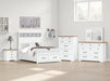 | Details | B844B2: Includes panel headboard, storage footboard, rails and roll slats, Footboard made with hardwood solids, MDF substrates and butcher block oak veneer, Headboard and rails made with hardwood solids and MDF substrates, White finish, Headboard with inset black metal barn sash, 2 drawers in footboard with fully finished interior, dovetail construction and ball-bearing side glides, Pulls with matte black finish, Bed does not require a foundation/box spring, Mattress available, sold separately, Assembly required, B844B1: Includes dresser and mirror, Made with hardwood solids, MDF substrates and butcher block oak veneer, Dresser with 2-tone finish (white finish; butcher block oak veneer with natural finish), Pulls with matte black finish, 10 spacious drawers with fully finished interiors (top drawers felt lined), dovetail construction and ball-bearing side glides , Drawers with inset picture fronts, Mirror attaches to back of dresser, B844-46: Made with hardwood solids, MDF substrates and butcher block oak veneer, 2-tone finish (white finish; butcher block oak veneer with natural finish), Pulls with matte black finish, 5 spacious drawers with fully finished interiors (top drawers felt lined), dovetail construction and ball-bearing side glides, Drawers with inset picture frame fronts, B844-93: Made with hardwood solids, MDF substrates and butcher block oak veneer, 2-tone finish (white finish; butcher block oak veneer with natural finish), Pulls with matte black finish, 3 spacious drawers with fully finished interiors (top drawers felt lined), dovetail construction and ball-bearing side glides, 110V power supply with dual USB charging ports, Power cord included; UL Listed, Drawers with inset picture frame fronts, | |