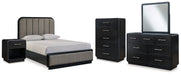 Rowanbeck Queen Upholstered Panel Bed with Mirrored Dresser, Chest and Nightstand Skip to content