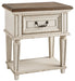 Elevating the art of traditional cottage styling, this nightstand is your dream bedroom retreat realized. Antiqued two-tone aesthetic blends a chipped white with a distressed wood finished top for added charm. Adorned with classic bail pull hardware, the smooth-gliding drawer is crafted with quality dovetail construction for years of satisfaction.