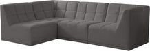 Bolster a contemporary vibe in your living room with this Relax modular sectional. Soft velvet upholstery offers delicate comfort, making this sectional cozy for anyone who sits in it. Biscuit tufting gives this sectional texture and a modern style, adding extra comfort and elegance to your living space. It s modular design allows you to create infinite configurations, making it a versatile piece to add to your home. A latch underneath the sectional makes it easy to attach to other pieces.