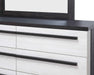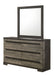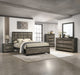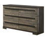 This rustic contemporary bedroom group is the perfect mix of styles to fit in a variety of decors. Heavy woodgrain details are accented with streamlined drawer pulls.